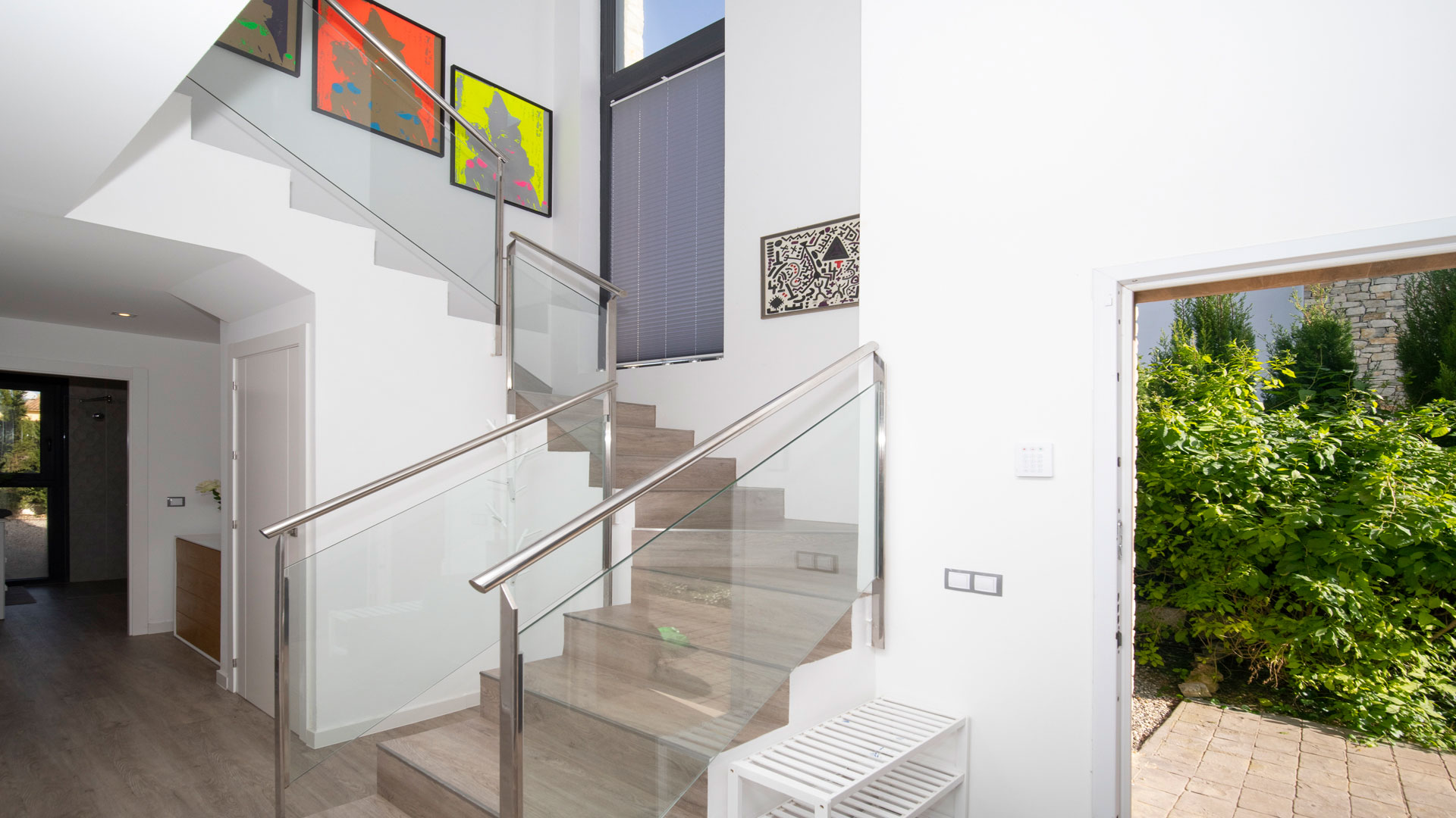 Das Obergeschoss begeistert mit zwei weiteren Schlafzimmern, einem modernen Badezimmer mit Doppelwaschtisch und Dusche sowie einem separaten WC. Ein exklusiver Saunabereich und eine große Galerie – perfekt als Fitnessraum, Homeoffice oder ruhige Leseecke – runden das Angebot ab und verleihen der Villa ein unvergleichliches Wohlfühlambiente.
